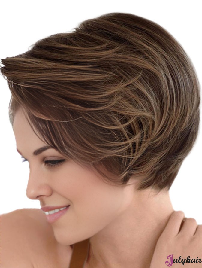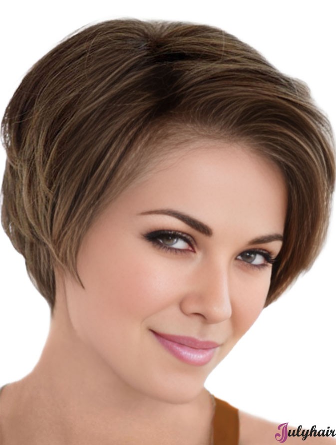 Human Hair Wigs Affordable Lace Front Wigs Monofilament Straight Style Brown Color Short Length Wigs