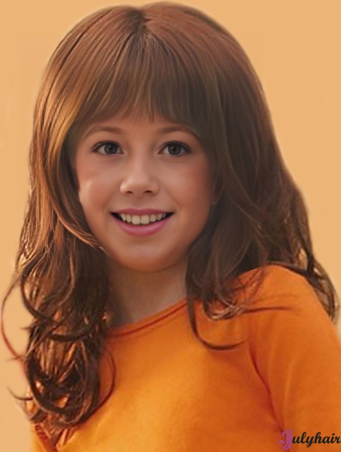 Curly Long Auburn Synthetic Lace Front Kids Wigs