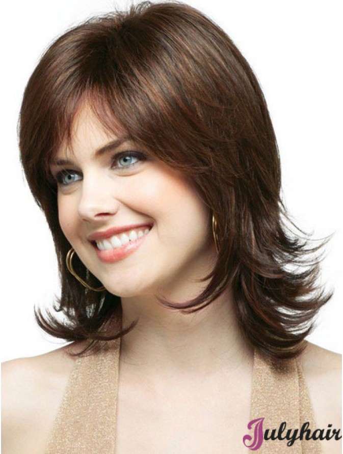 Without Bangs Brown Wavy 13 inch Shoulder Length Synthetic Wigs
