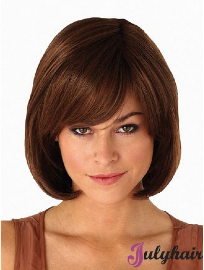 Bob Hairstyle Wigs Chin Length Brown Color With Synthetic