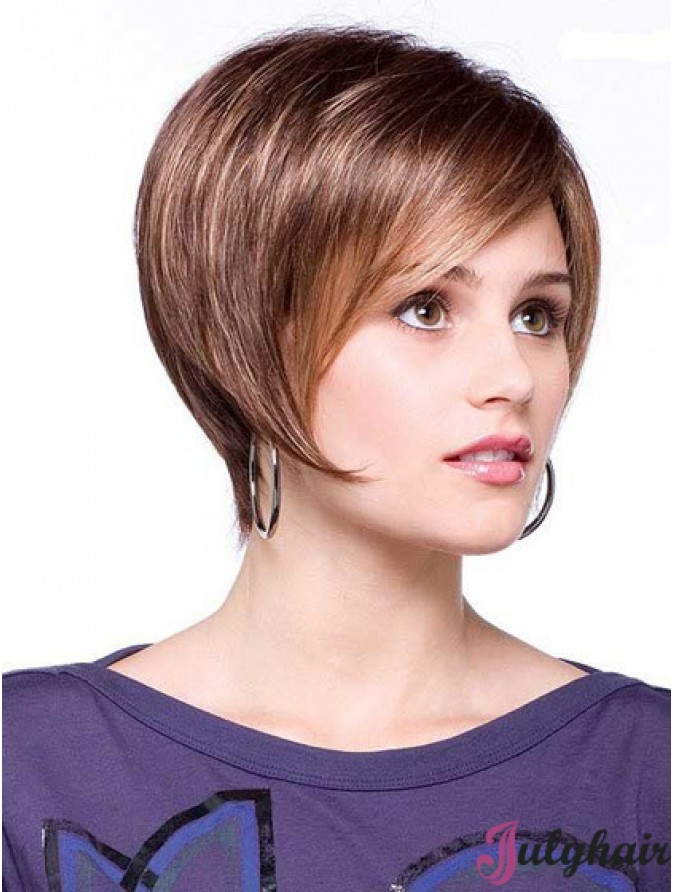 Chin Length Straight Monofilament Brown Stylish Bob Wigs