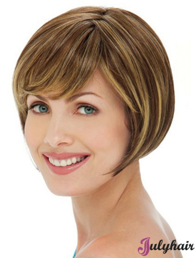 6 inch Soft Wavy Boycuts Brown Short Wigs