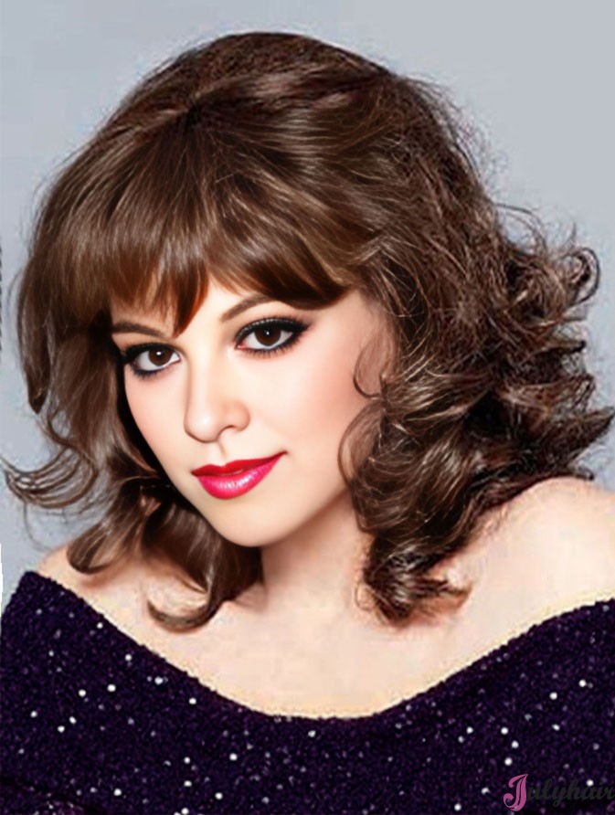 Synthetic Chin Length Curly Monofilament Elderly Lady Wigs