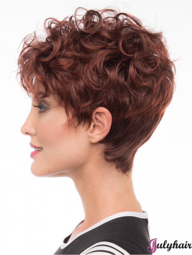 Short Wavy Capless Brown Cheap Monofilament Human Wigs UK