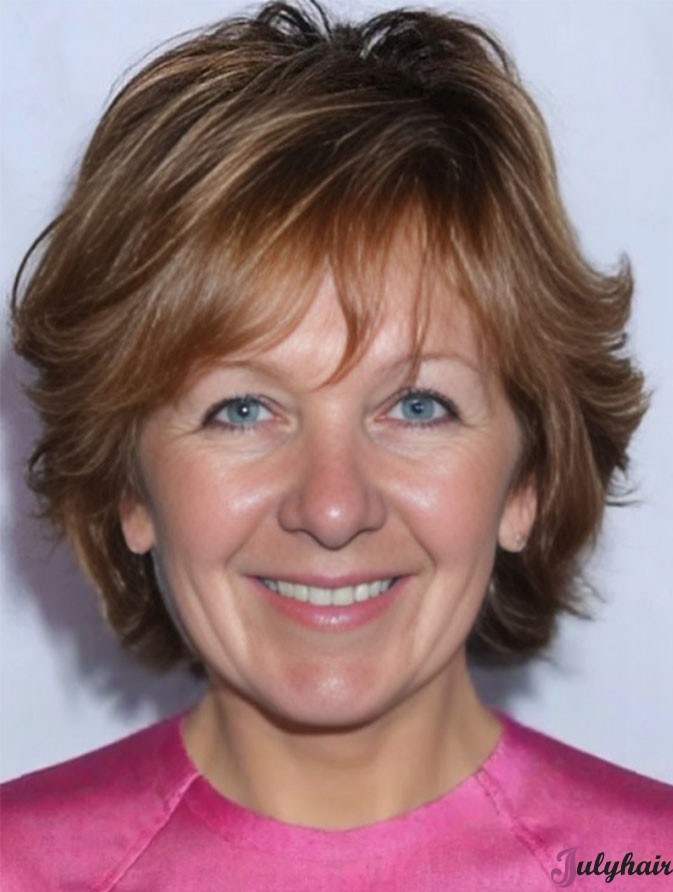 Human Hair Lace Front Wigs Brown Color Wavy Style With Bangs