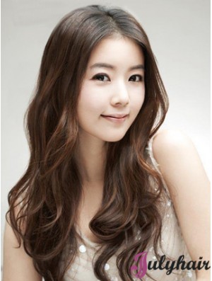 24 inch Brown Long Without Bangs Wavy Sassy Lace Wigs