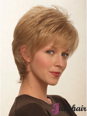 Straight Short Blonde 8 inch Monofilament No-Fuss Bob Wigs