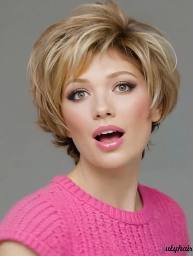 Lace Front Wavy Layered Short 8 inch Online Human Hair Wigs