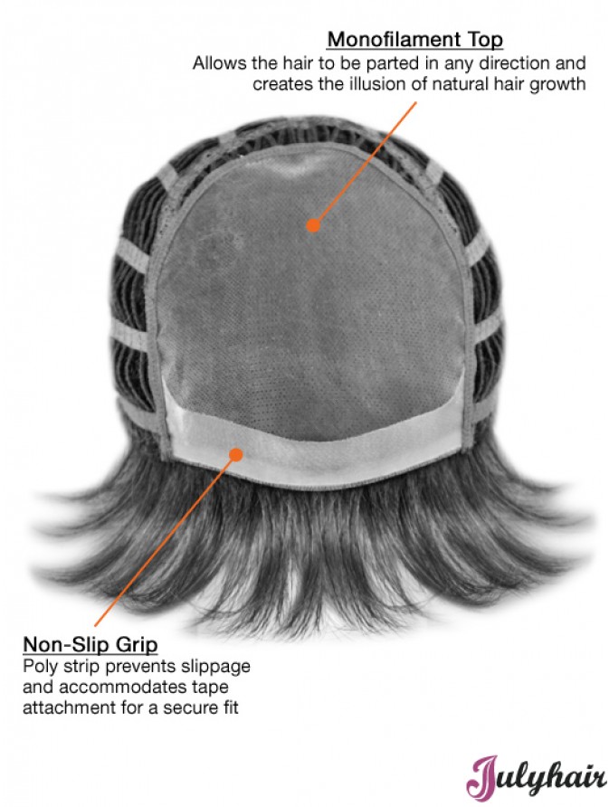 Monofilament wigs offer you a cap that is soft to the touch. Basically see through and very hard to detect. The monofilament weaving allows each strand of hair to move freely and more naturally. The TOP area of this wig has been fully HAND TIED so that the appearance is as natural as possible. It is a MONOFILAMENT piece, which means that wherever you part the wig, it will give the impression that the hair is coming from your own scalp.