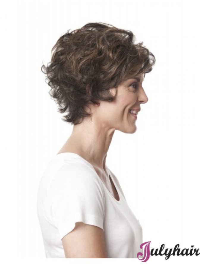 Short Curly Layered Brown Top 100% Hand-tied Wigs