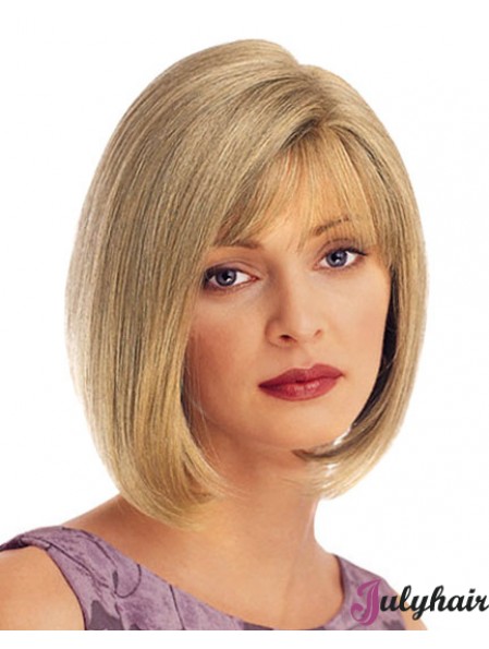 • Chin Length Straight Blonde With Bangs UK Cheap Monofilament Wigs
