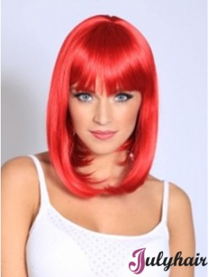 Straight With Bangs Shoulder Length Red Fashionable Lace Front Wigs