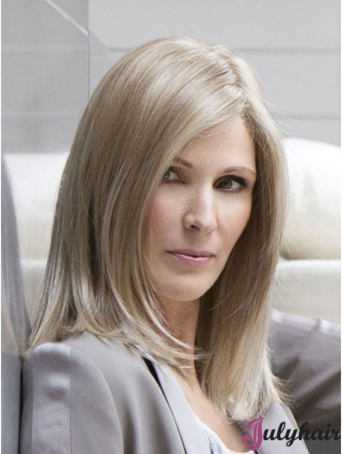 Monotop Real Hair Wigs Long Length Straight Style Blonde Color