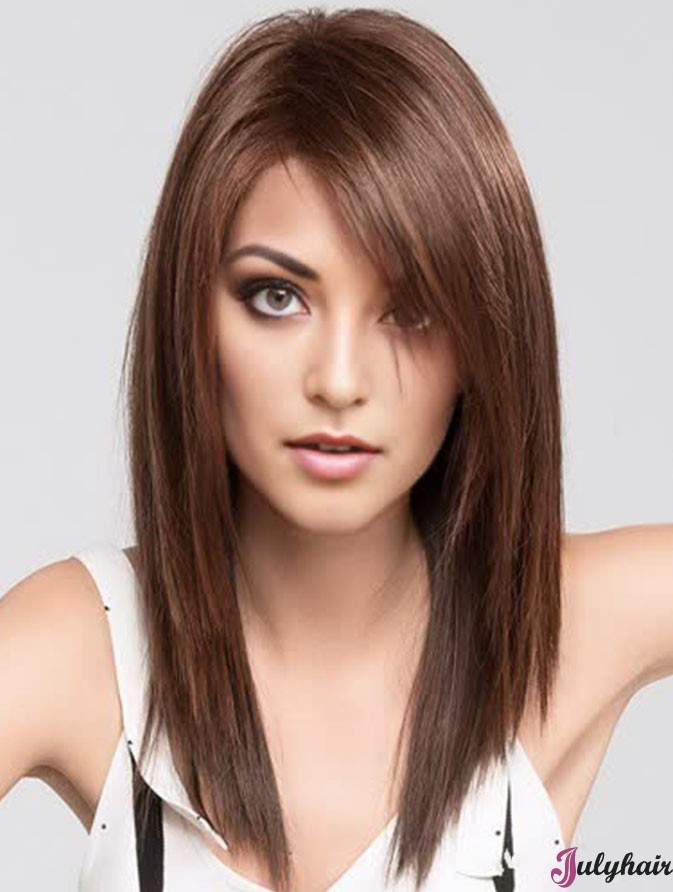 Brown 16 inch With Bangs Long Trendy Monofilament Wigs