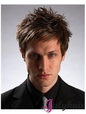 100% Hand Tied Synthetic Brown Straight Short Men's Wigs