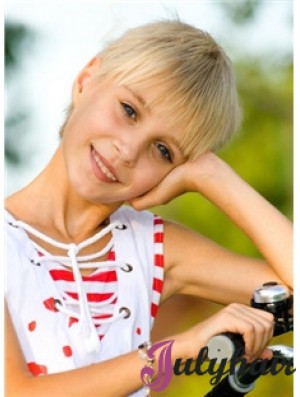 Straight Short Blonde Remy Human Hair Capless Kids Wigs