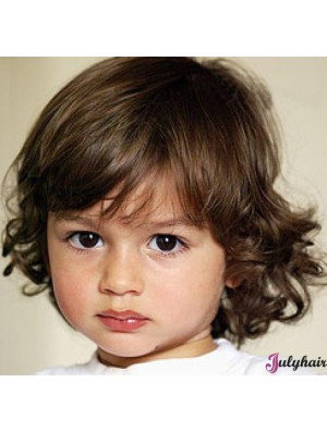 Curly Short Brown Synthetic 100% Hand-tied Kids Wigs