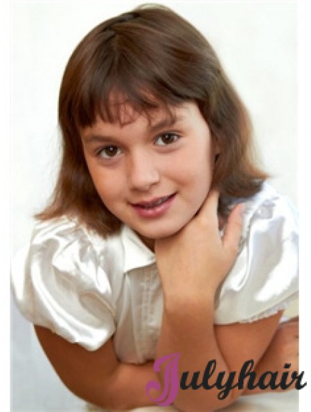 Brown Without Bangs Straight 16 inch Wig Human Hair