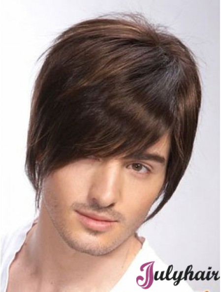 100% Hand Tied Brown Remy Human Short Straight Wigs Man