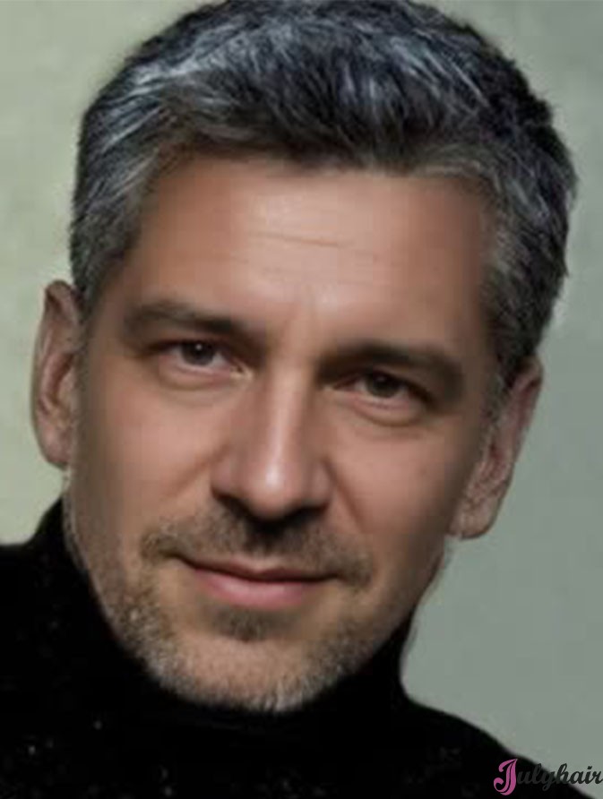 Grey 6 inch Capless Grey Short Remy Human Hair Straight Mens Wigs