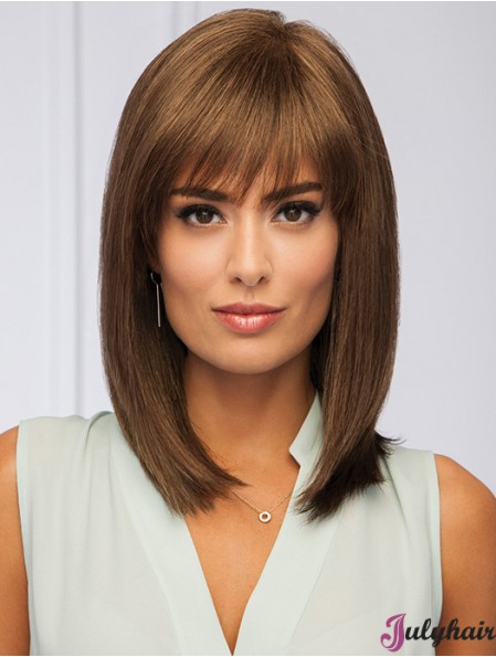 20 inch Long Brown Straight Remy Human Hair Wigs With Bangs