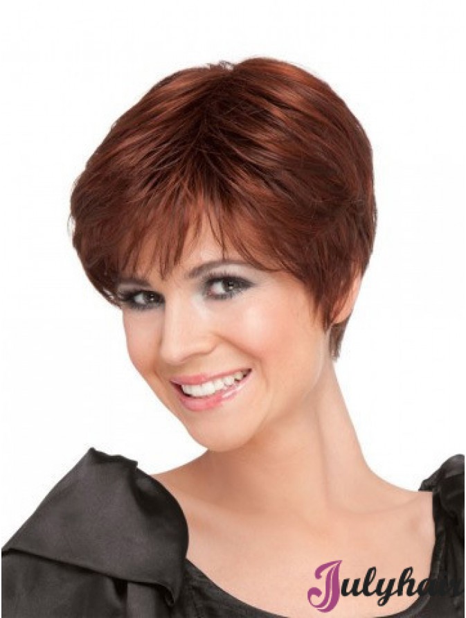 Red 100% Hand Tied Synthetic Short Straight Monofilament Wigs