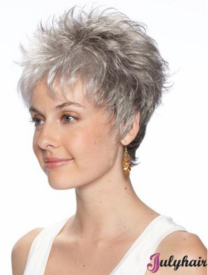 This is a short Heat Friendly Synthetic Wig lace front cut layered grey wig with retro style and edgy twist,which create plenty of volume and height in order to create a polished silhouette that'll have heads turning.