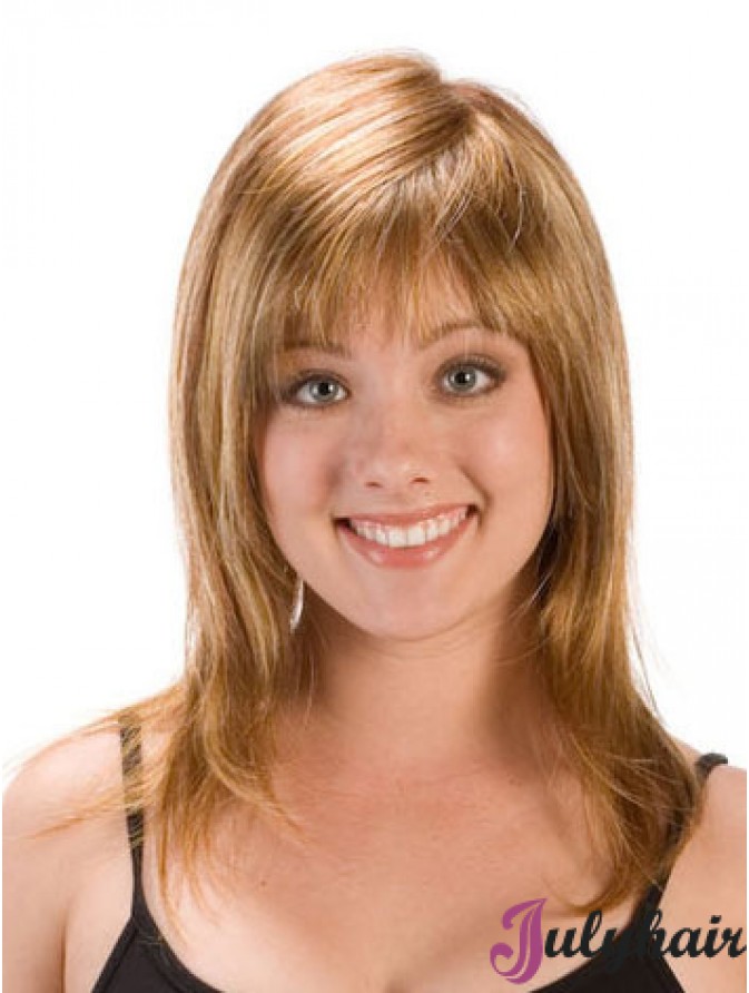 Shoulder Length Layered Straight Blonde Trendy Synthetic Wigs