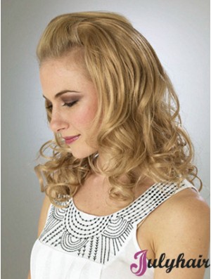 With Bangs Blonde Wavy Shoulder Length 10 inch No-Fuss Medium Wigs