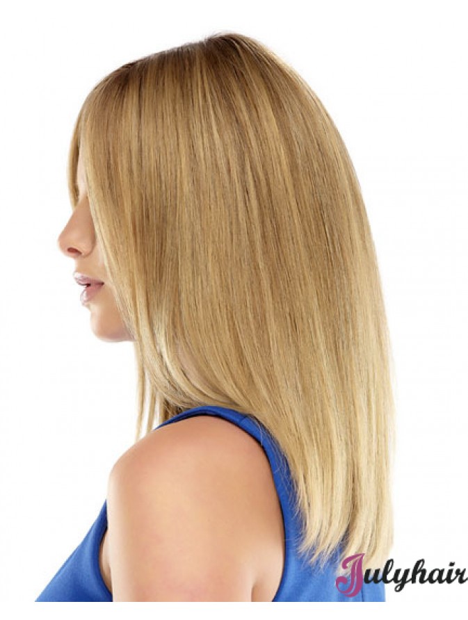 Shoulder Length With Bangs 14 inch Wavy Blonde Medium Wigs