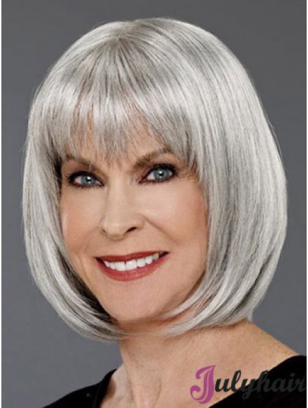 Straight Capless 12 inch Affordable Chin Length Grey Wigs