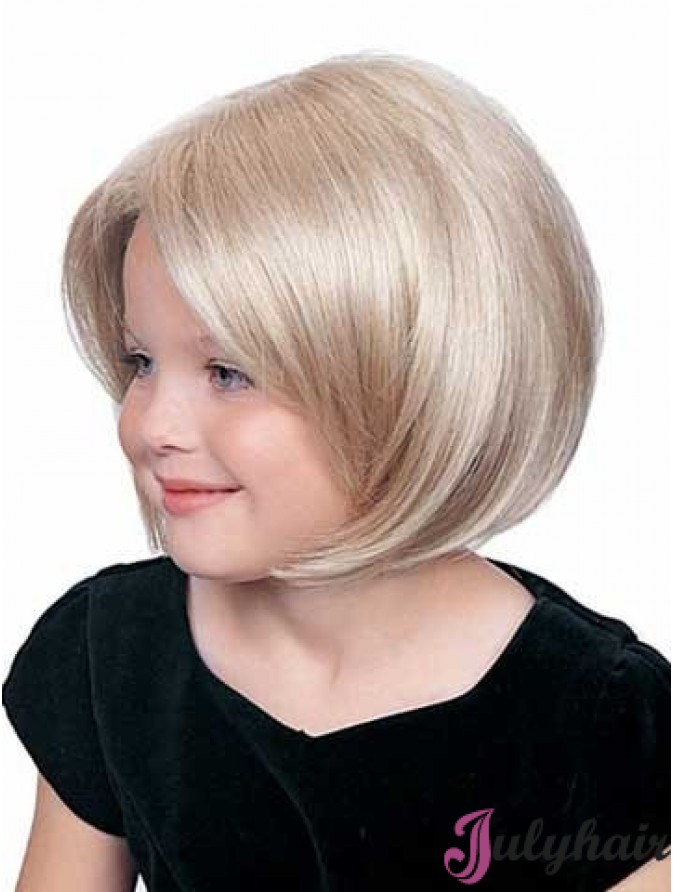 Straight Chin Length Blonde Synthetic Lace Front Kids Wigs