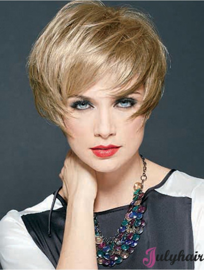 Straight Layered Cropped Discount Blonde Synthetic Wigs