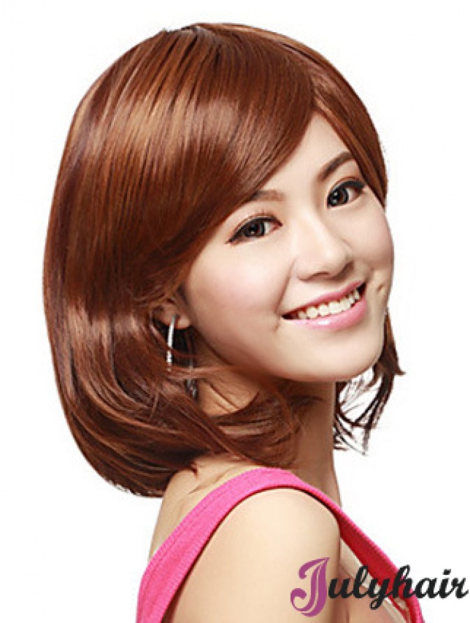 Shoulder Length Bobs Straight Auburn Flexibility Synthetic Wigs