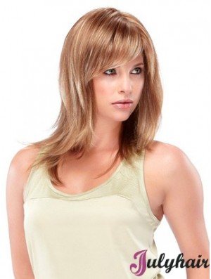 Straight Without Bangs Capless 11 inch Blonde Shoulder Length Wigs Synthetic