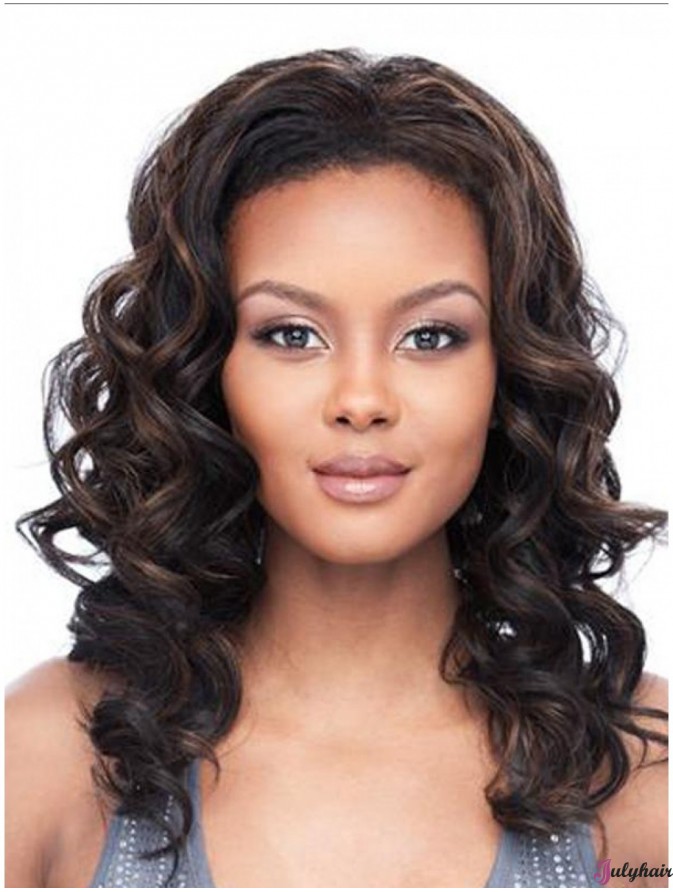 • Wavy Brazilian Remy Hair Brown Shoulder Length Flexibility 3/4 Wigs