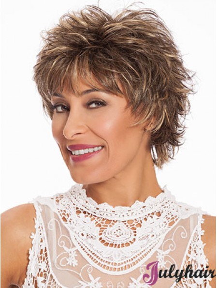 Ladies Wigs Brown Cropped Wavy Boycuts Wigs