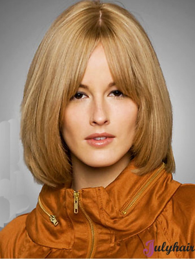 Wig Bob Style Chin Length Blonde Color Straight Style