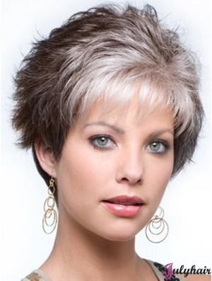 Capless Curly Cropped 4 inch Salt And Pepper Grey Wigs
