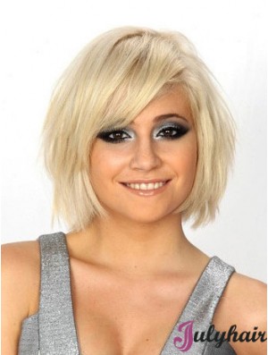 Blonde Straight Shoulder Length With Bangs 100% Hand-tied Cheap UK Wigs