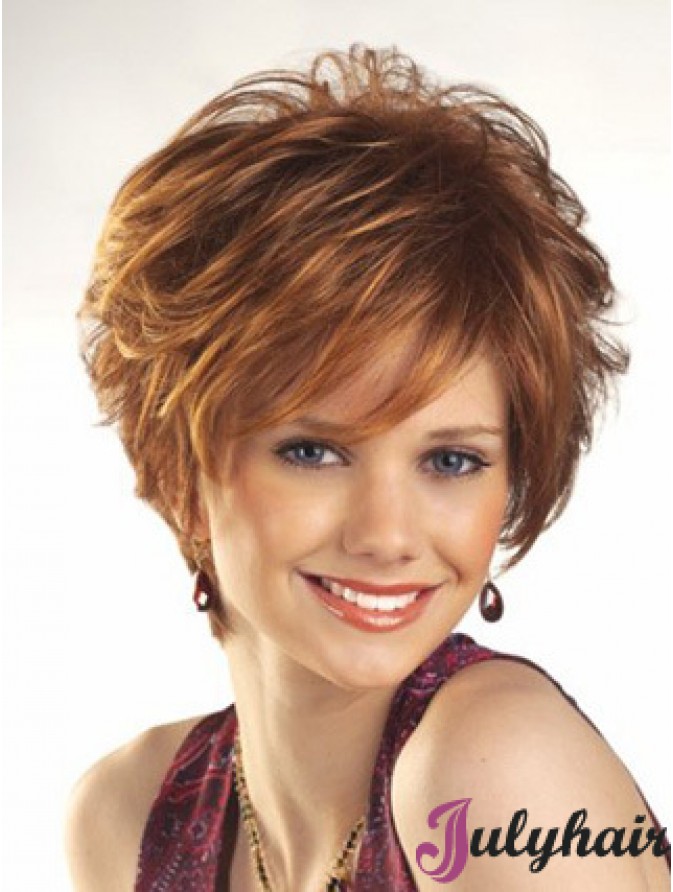 Cheap Wigs For Women Boycuts Auburn Color Wavy Style With Capless