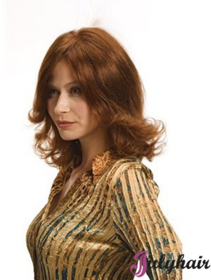 Durable Womens Auburn Wavy Shoulder Length Lace Front Mono Wigs