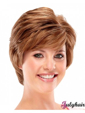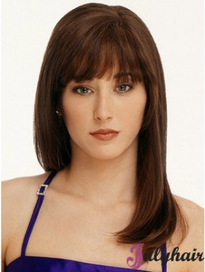 Light Auburn Human Wigs With Bangs Capless Straight Style Shoulder Length