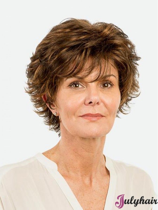 Straight Brown Monofilament Synthetic Layered 8 inch Short Wigs
