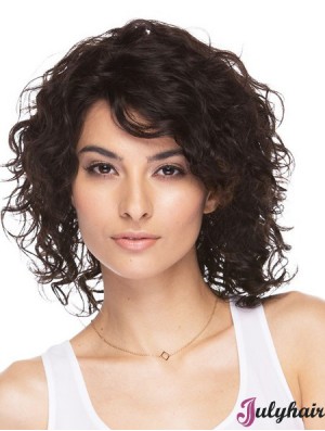 Shoulder Length Curly Brown High Quality Brazilian Remy Hair Half Wigs