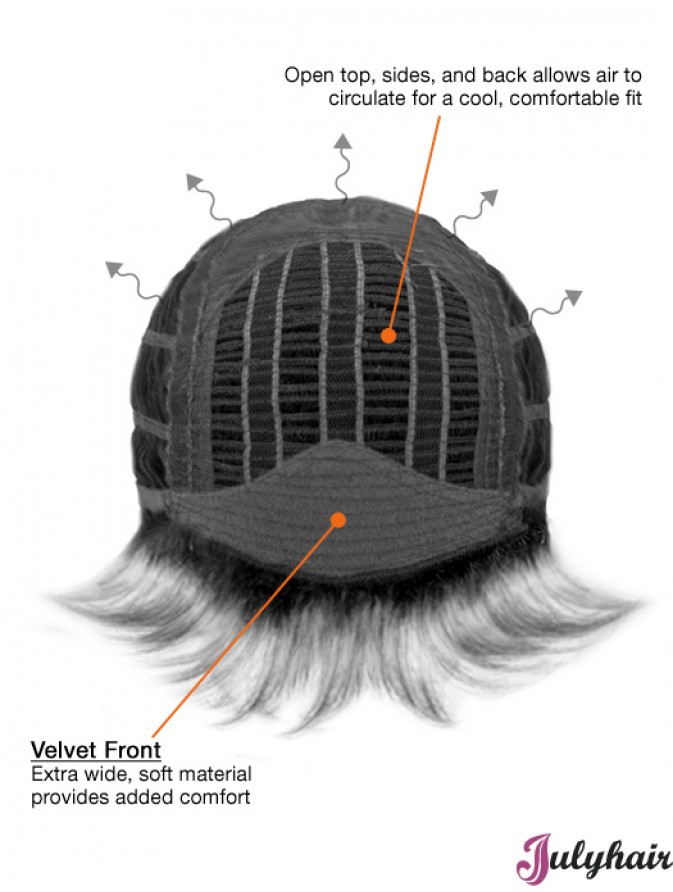 Capless wigs allow your head to stay cooler than solid capped wigs. This is due to the fact that it is made with less hair and the specific capless construction allows for some air flow to the head and scalp.There are also adjustable straps or hooks at the nape of the neck to secure the wig in place.