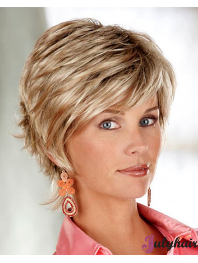 Straight Layered Short Cheap Blonde Synthetic Wigs