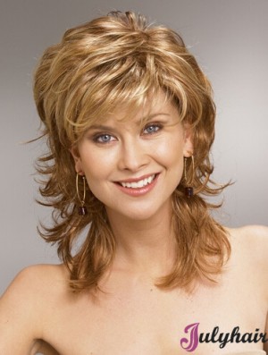 Best Comfortable Synthetic Wigs With Bangs Monofilament Blonde Color Wavy Style