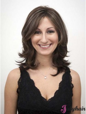 Brown With Bangs Wavy 12 inch Shoulder Length Monofilament Ladies Wigs