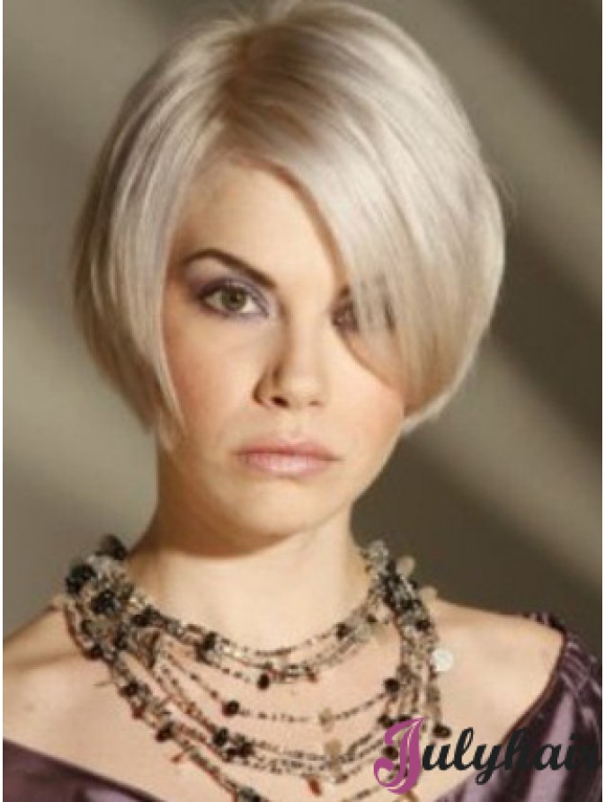 Capless Grey Short Straight 8 inch Platinum Blonde Amazing Fashion Wigs